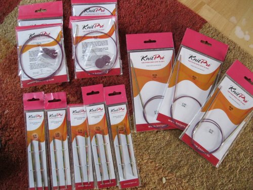 In stark contrast to this old, well-loved and valued box of goodies, I received an order of needles today. I needed new needles for my Bohus class, as I didn't have the small sizes required. I ordered 3 Knit Pro fixed circulars, 80cm in 2.25mm, 2.5mm and 2.75mm. I have heard that these break, but I'm willing to risk it. I also got some new interchangeable needle tips, in 3mm, 3.25mm, 3.75mm, 4mm and 4.5mm, along with 4 new cables, 2 in 80cm and 2 in 100cm. Some of the needle tips I now have 2 pairs of (or 2.5 pairs of in 3.75mm), but I've found myself wishing I had more than one set in different sizes.